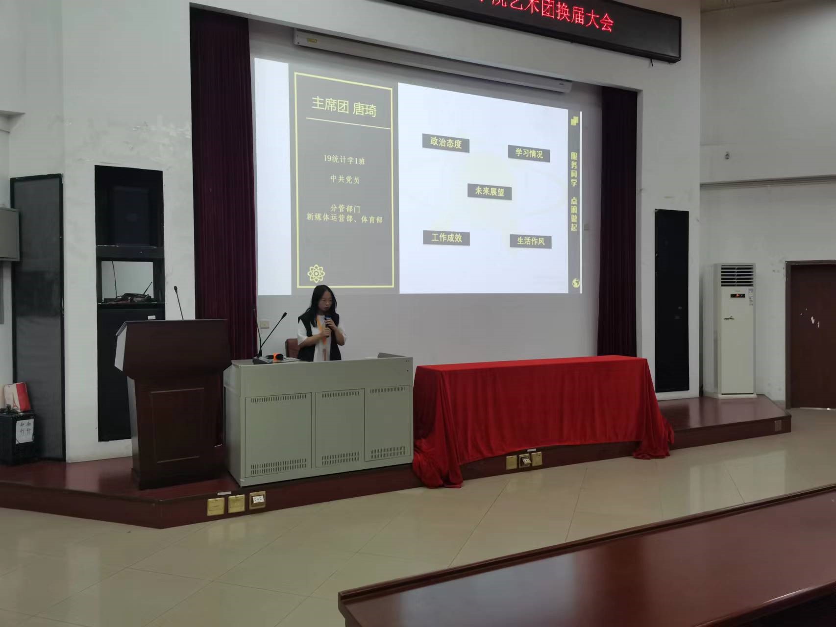 主席团成员唐琦、黄榕榕、梁樱子依次对过去一年的工作情况进行了总结,旨在改进方法,提高工作效率。之后,秘书部、生权部、体育部、文艺部负责人从政治态度、道德品行、学习情况、工作成效、经验总结方面进行述职。