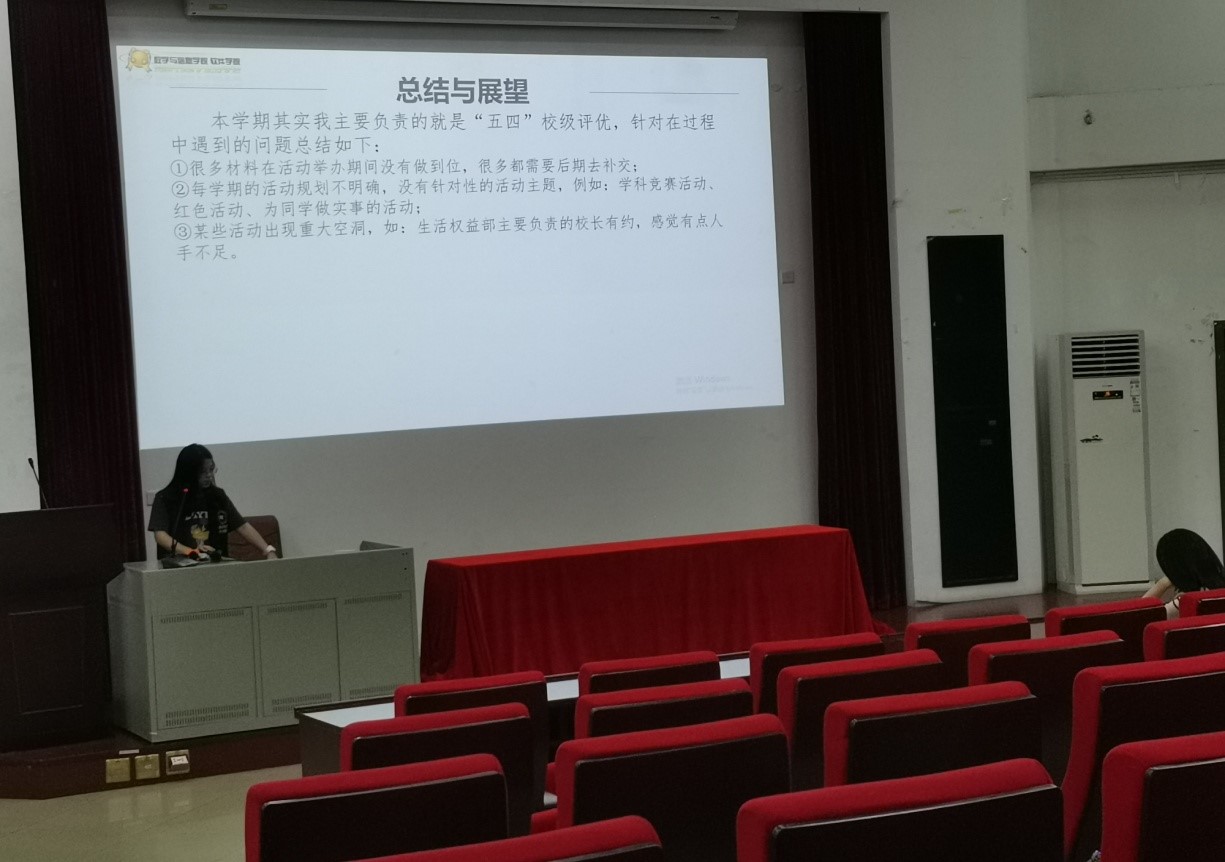 2021-2022学年我院团委学生会的工作接近尾声,为总结本学年的工作,发现不足、发扬优势、表扬先进、提升工作质量。应学生会改革要求,数学与信息学院、软件学院团委学生会述职评议会议于2022年5月29日晚上在院楼500举行,参会人员包括:我院团委学生会指导老师刘雨丝、团委副书记尹永毅、主席团成员以及各部门负责人。