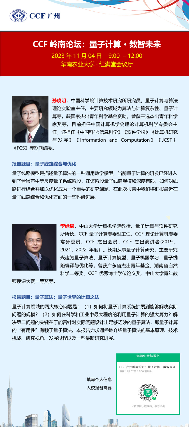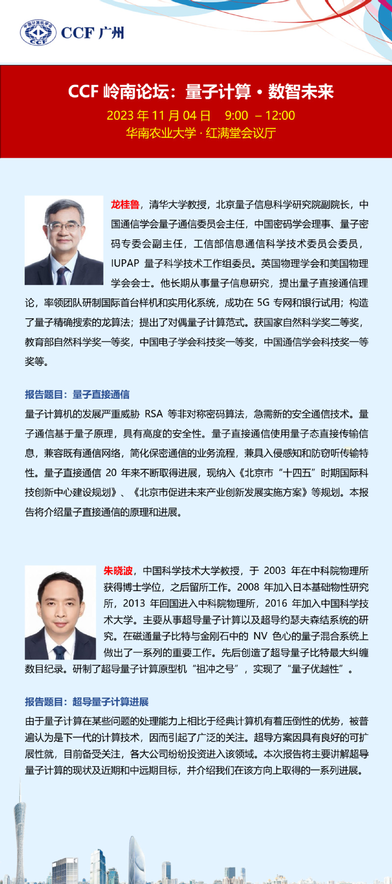 CCF岭南论坛“量子计算-数智未来”将于11月4日在我校举行