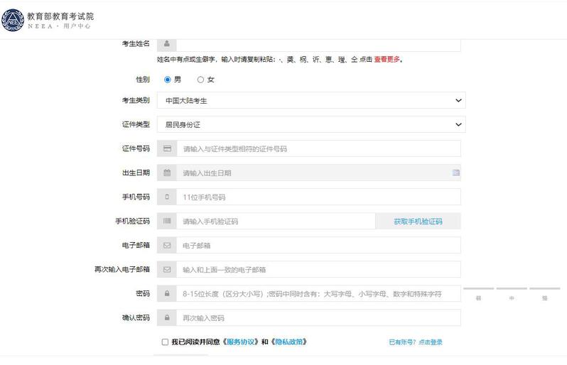 如果没有中国教育网账号,先注册“中国教育考试网账号”。