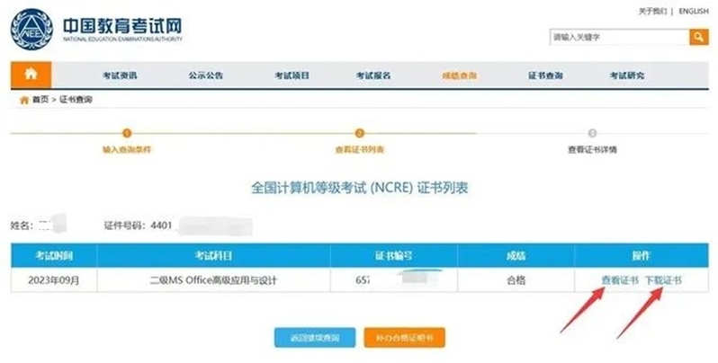 在两种查询方式中选择 “本人查询”,“本人查询”可以查看完整信息,并下载电子证书。