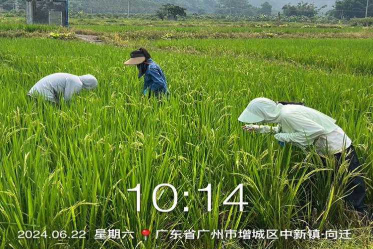 为响应国家乡村振兴战略,助力广东省“百千万工程”行动落深落实,近日,我院张建桃副教授、植保学院江定心副教授与仲恺农业工程学院刘雯副教授率领乡村振兴志愿服务团队,走进广州市增城区三星村增城丝苗米种植基地,开展稻病虫害防治技术指导。