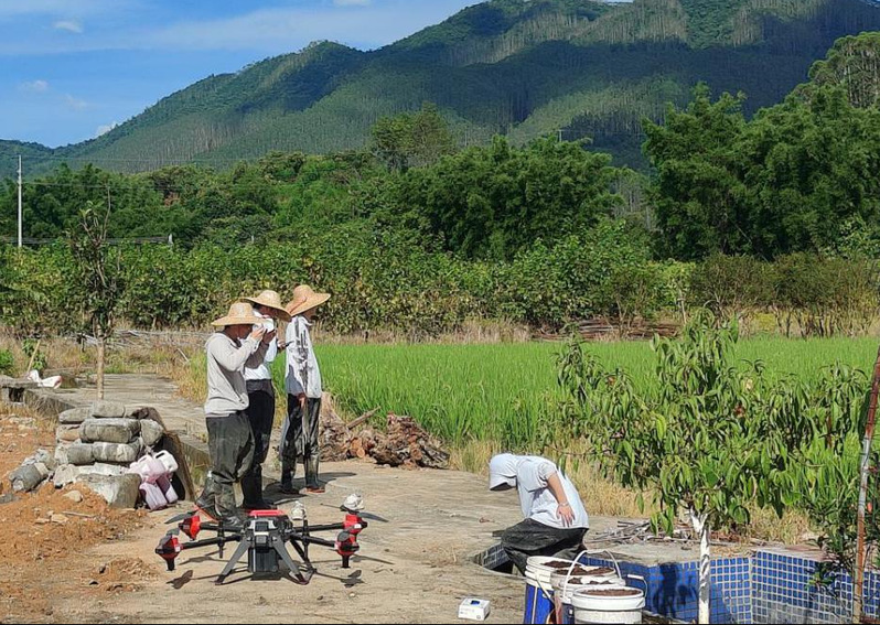 服务团队针对增城丝苗米种植过程中存在的问题,开展病虫害和稻田退水农药残留调查,并推广无人机精准施药技术。自6月23日以来,服务团队使用航空植保无人机以不同飞行参数、不同农药剂量对试验田水稻进行喷施,拟采用具有低抗性、高持效性的介离子类农药—10%三氟苯嘧啶进行病虫害防治。