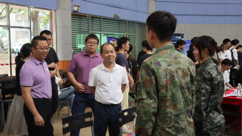 在招聘现场,肖华、李鎏、陈文艺等与参会企业和应聘学生进行亲切交谈,了解毕业生求职进展及用人单位招聘情况和市场需求,并听取用人单位对学校人才培养质量、学生就业情况等方面的反馈意见。