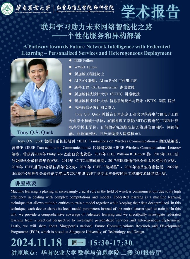 华南农业大学115周年校庆“学术华农”系列活动之0423: 联邦学习助力未来网络智能化之路——个性化服务和异构部署