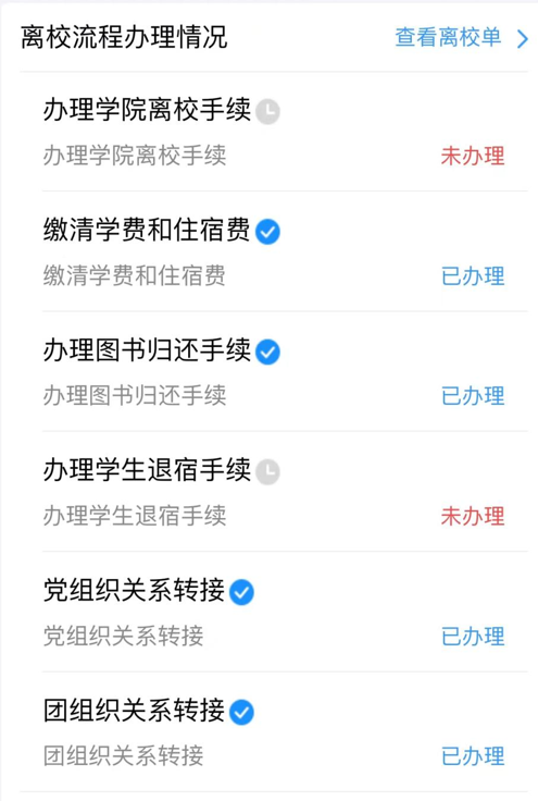 已完成毕业生离校清单如上图所示